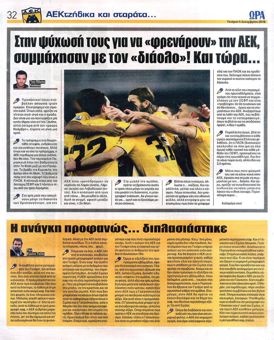 ΑΘΛΗΤΙΚΗ ΩΡΑ ΤΩΝ ΣΠΟΡ - 5 Δεκεμβρίου 2018
