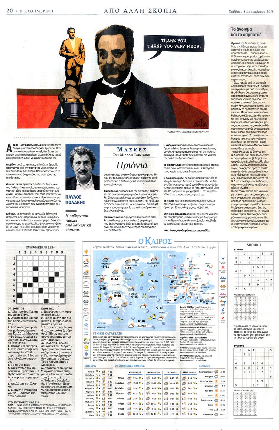 ΚΑΘΗΜΕΡΙΝΗ - 8 Δεκεμβρίου 2018