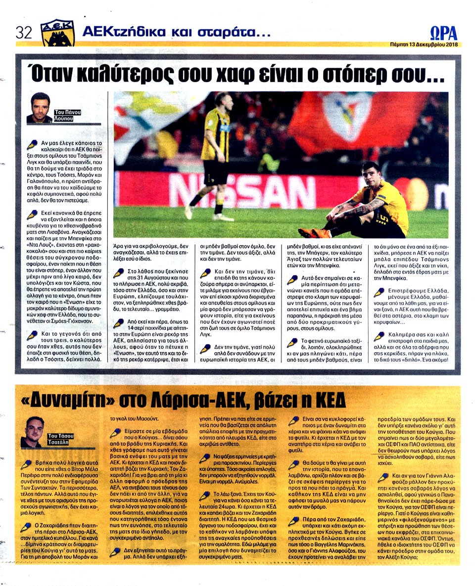 ΑΘΛΗΤΙΚΗ ΩΡΑ ΤΩΝ ΣΠΟΡ - 13 Δεκεμβρίου 2018