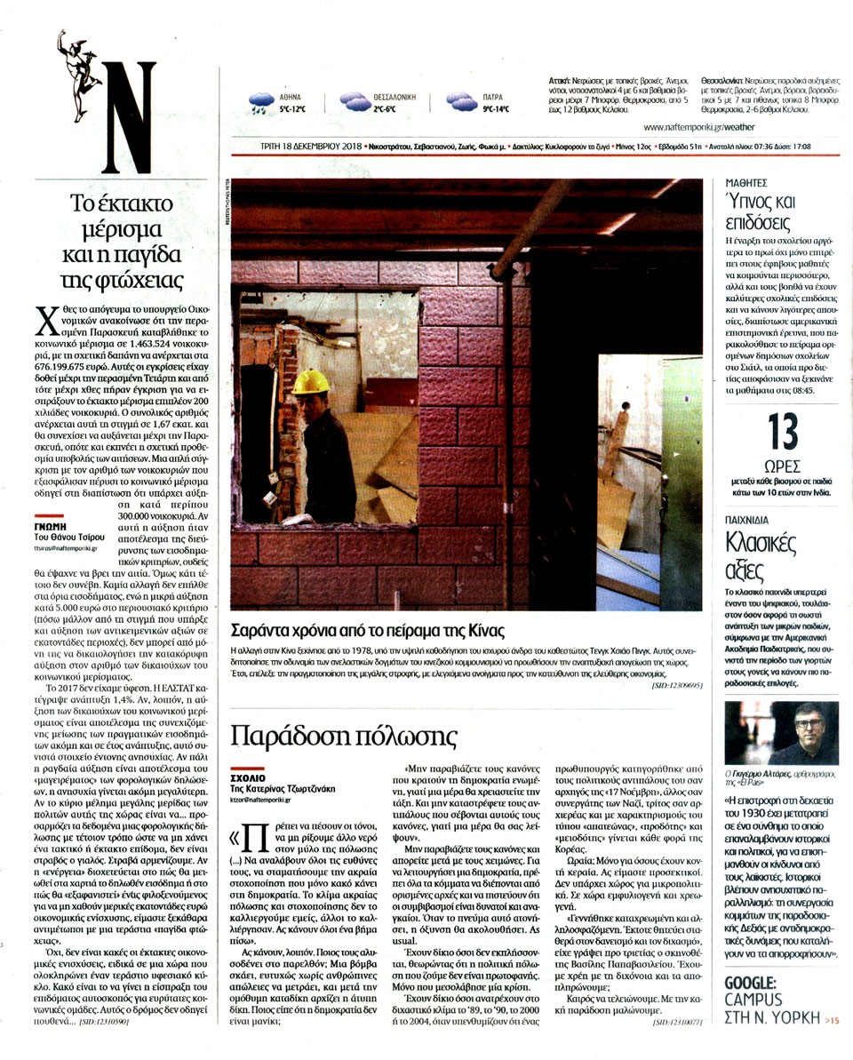 ΝΑΥΤΕΜΠΟΡΙΚΗ - 18 Δεκεμβρίου 2018