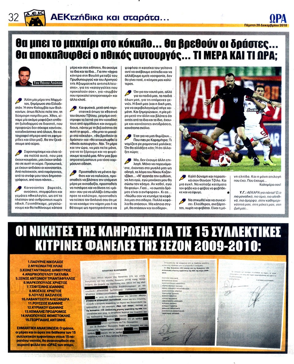ΑΘΛΗΤΙΚΗ ΩΡΑ ΤΩΝ ΣΠΟΡ - 20 Δεκεμβρίου 2018