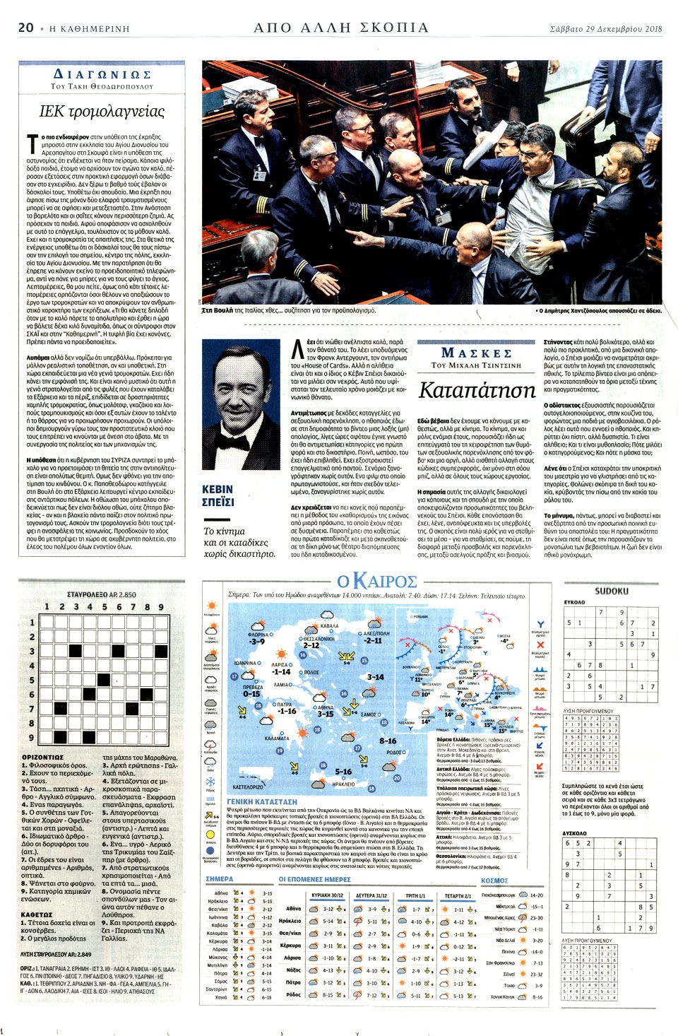 ΚΑΘΗΜΕΡΙΝΗ - 29 Δεκεμβρίου 2018