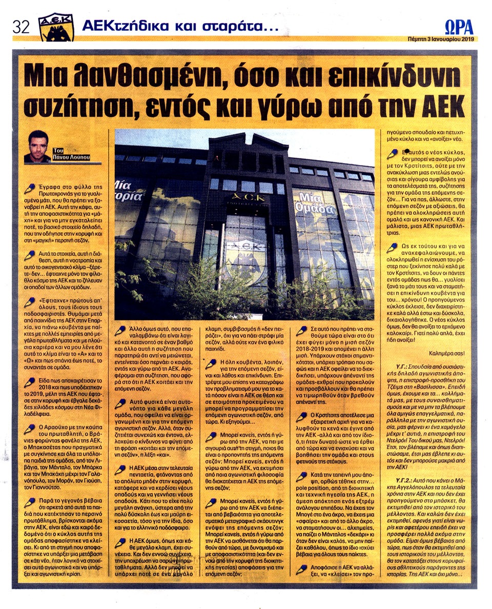 ΑΘΛΗΤΙΚΗ ΩΡΑ ΤΩΝ ΣΠΟΡ - 3 Ιανουαρίου 2019