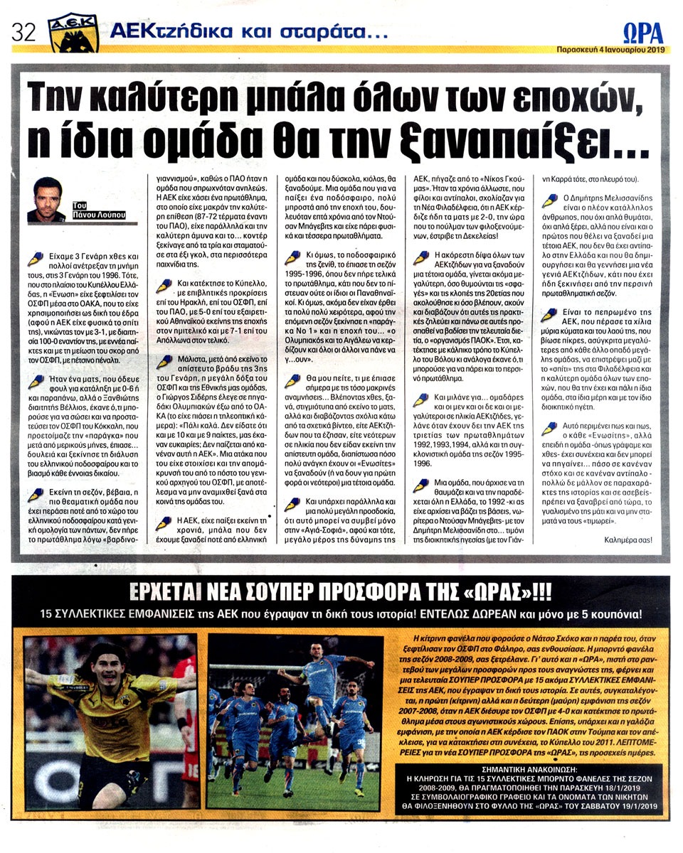 ΑΘΛΗΤΙΚΗ ΩΡΑ ΤΩΝ ΣΠΟΡ - 4 Ιανουαρίου 2019