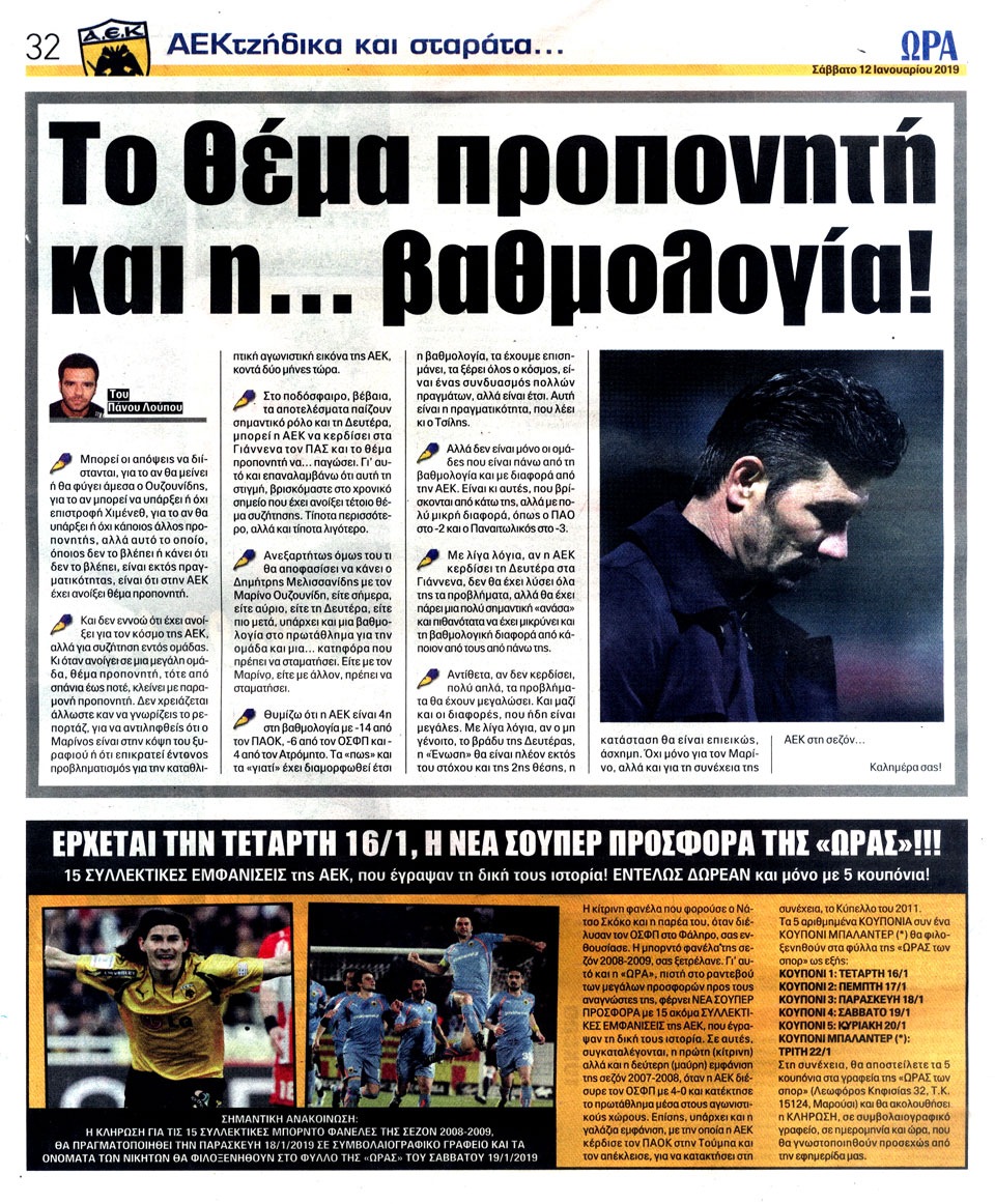 ΑΘΛΗΤΙΚΗ ΩΡΑ ΤΩΝ ΣΠΟΡ - 12 Ιανουαρίου 2019