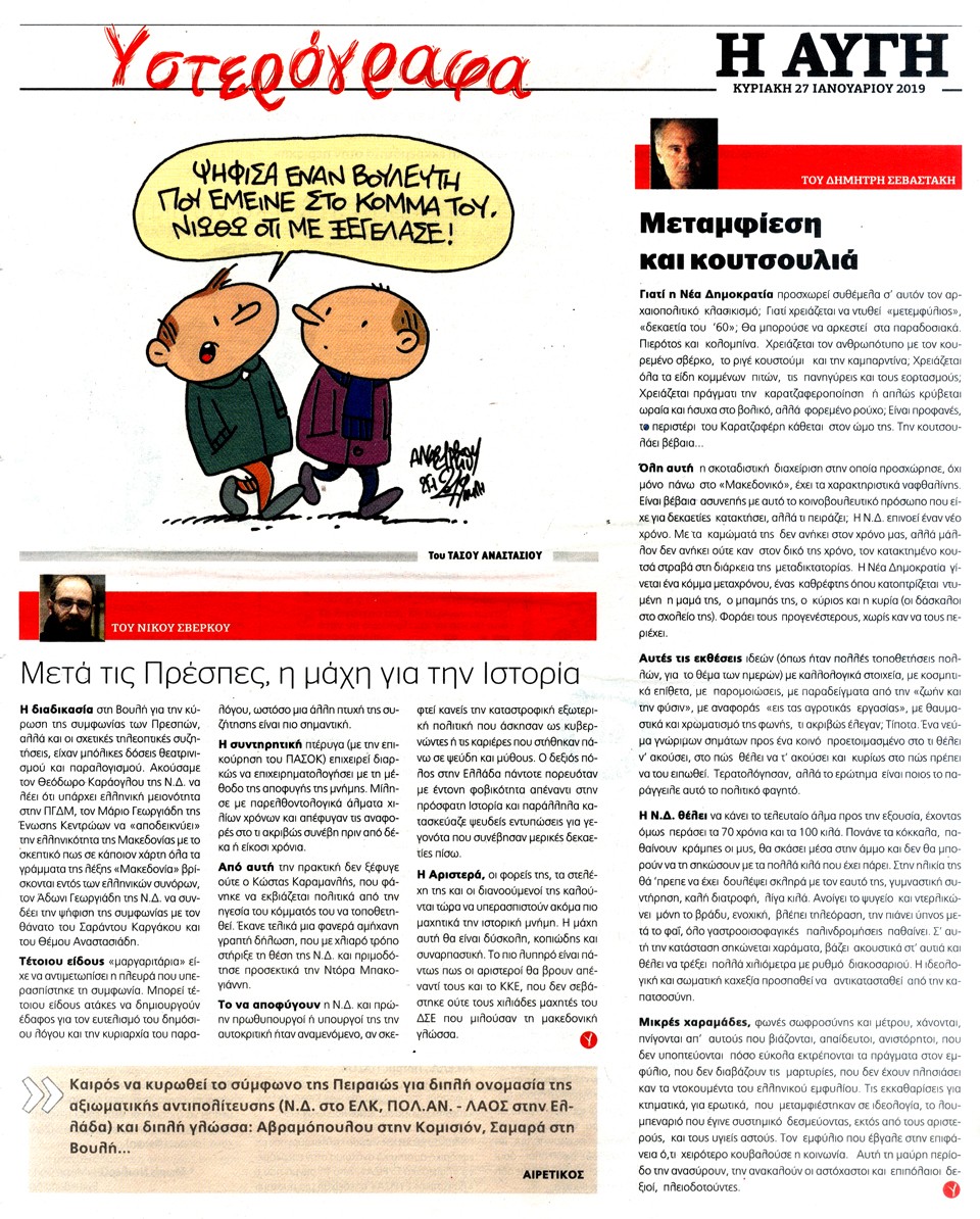 Η ΑΥΓΗ ΤΗΣ ΚΥΡΙΑΚΗΣ - 27 Ιανουαρίου 2019