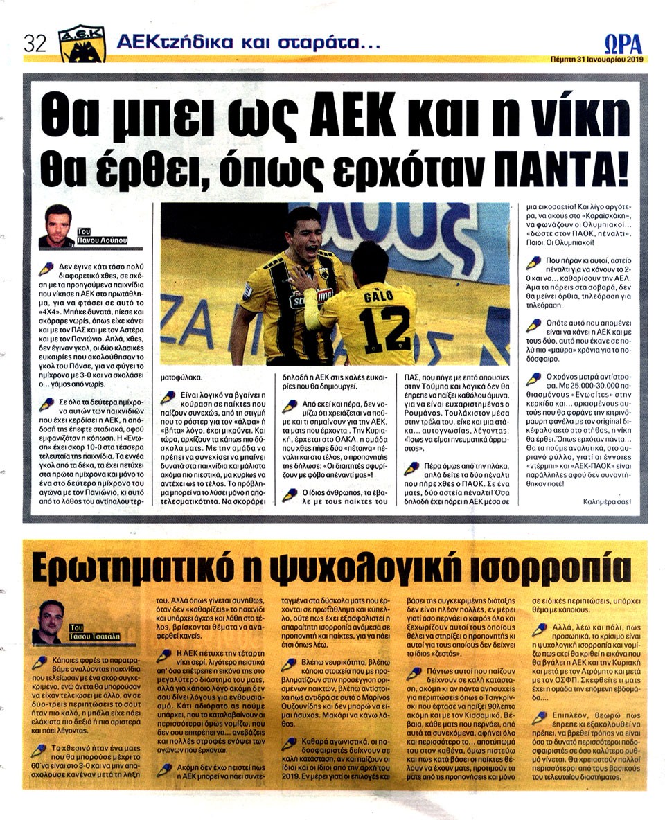 ΑΘΛΗΤΙΚΗ ΩΡΑ ΤΩΝ ΣΠΟΡ - 31 Ιανουαρίου 2019