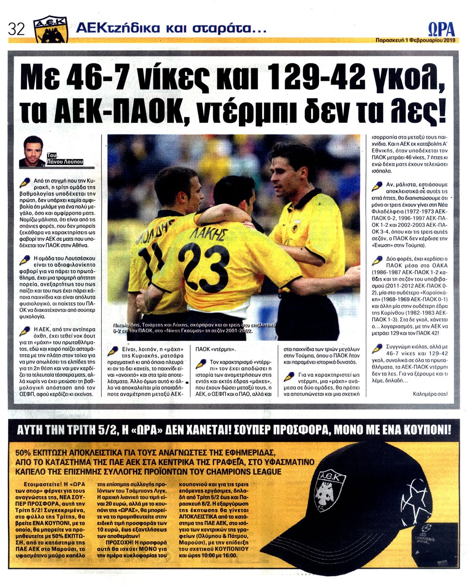 ΑΘΛΗΤΙΚΗ ΩΡΑ ΤΩΝ ΣΠΟΡ - 1 Φεβρουαρίου 2019