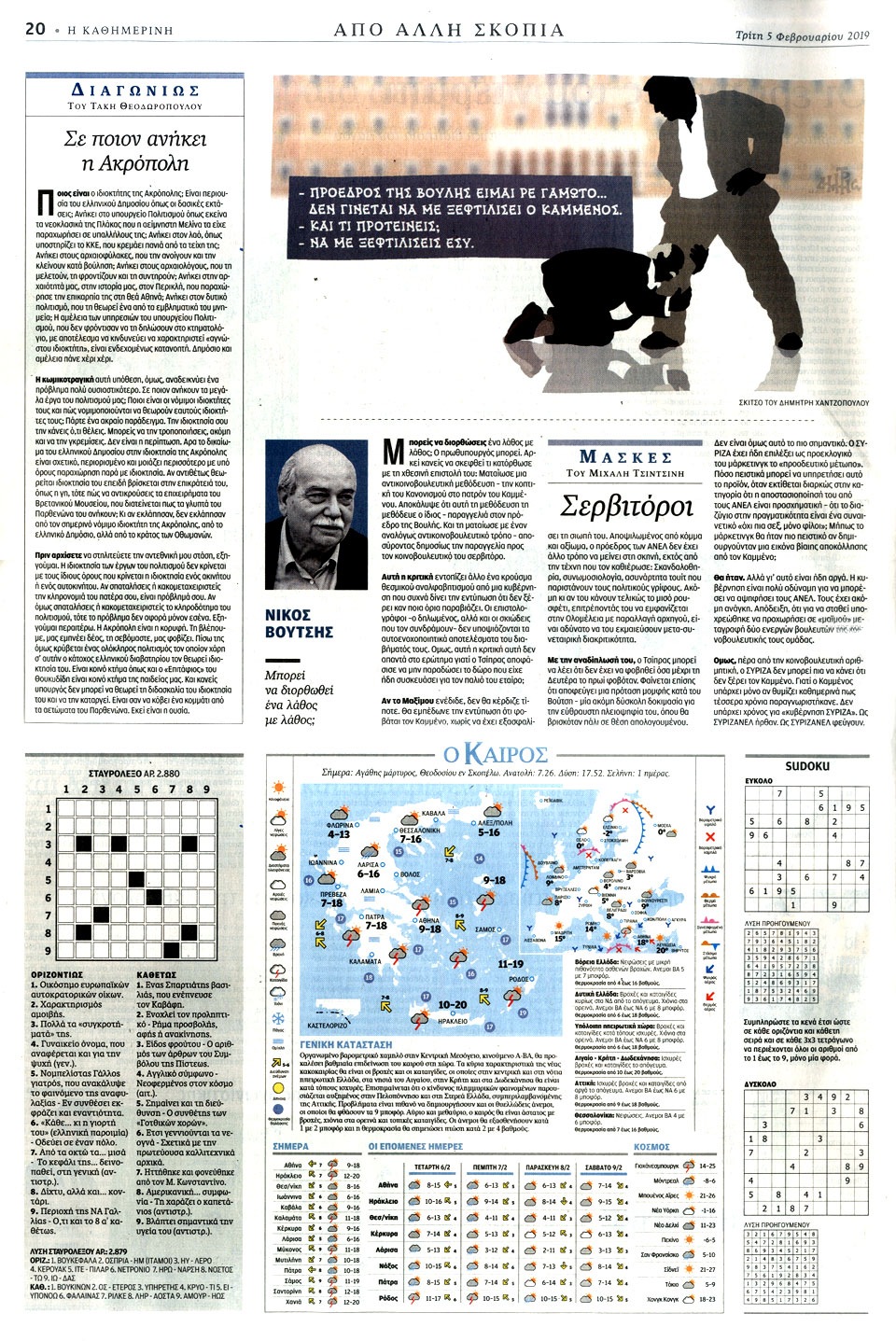 ΚΑΘΗΜΕΡΙΝΗ - 5 Φεβρουαρίου 2019