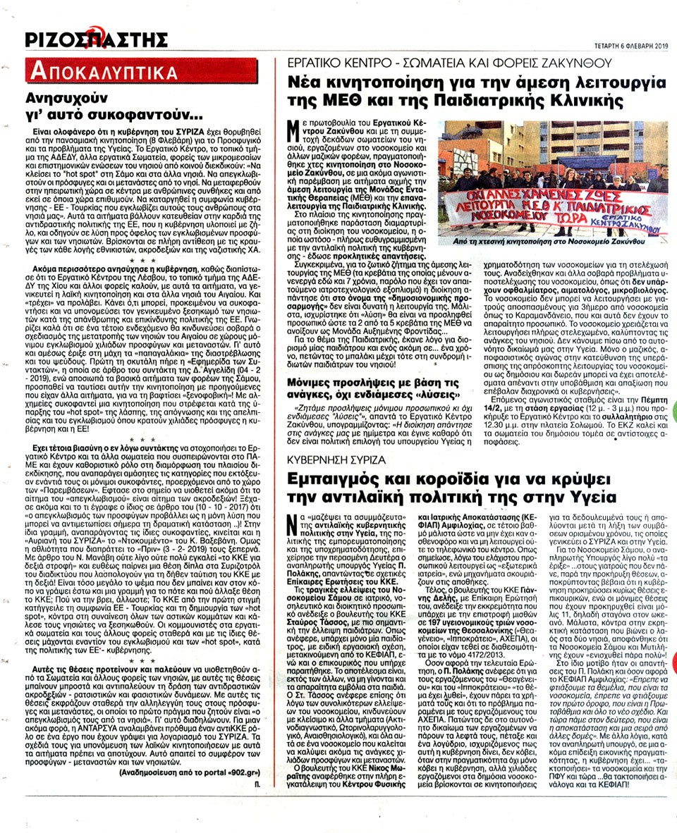ΡΙΖΟΣΠΑΣΤΗΣ - 6 Φεβρουαρίου 2019