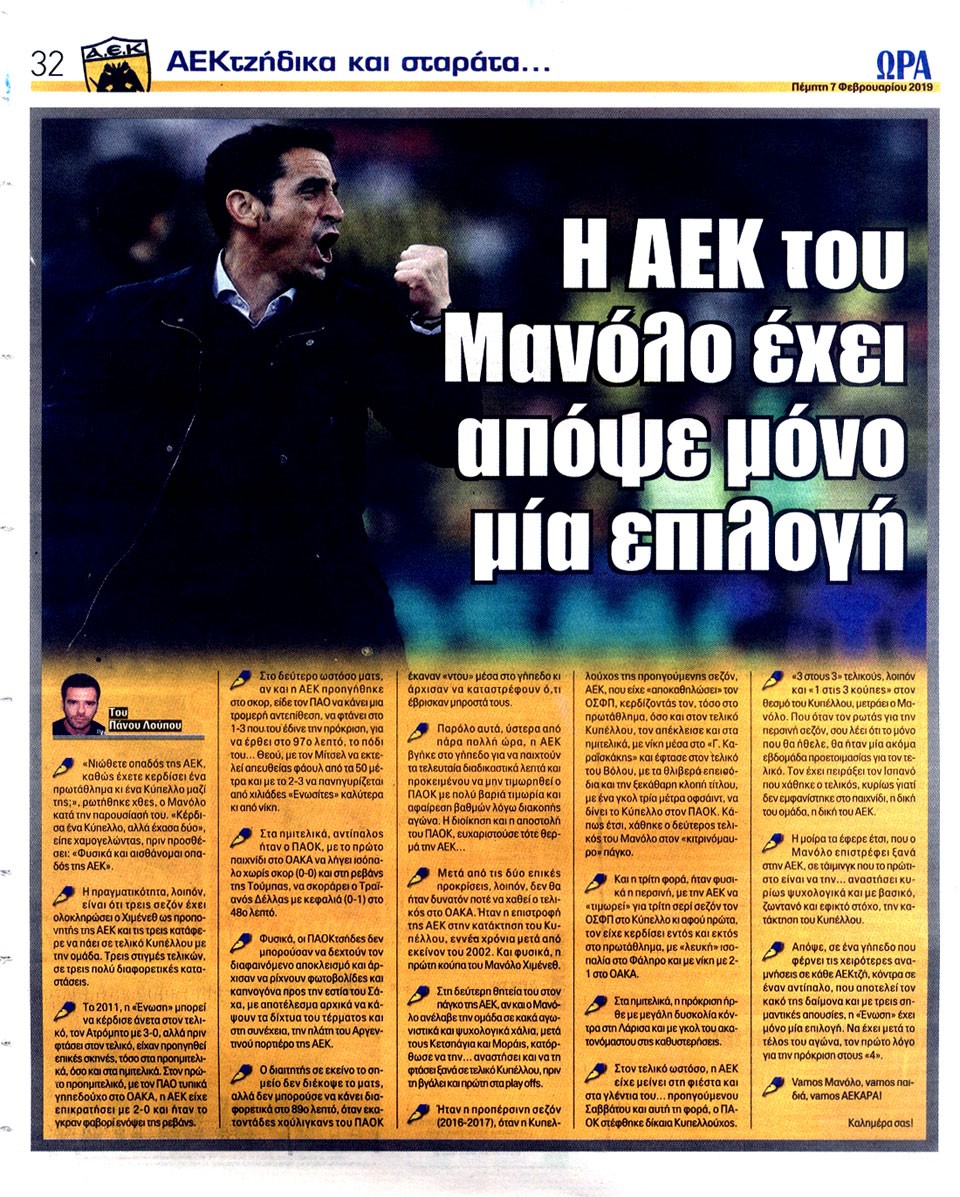 ΑΘΛΗΤΙΚΗ ΩΡΑ ΤΩΝ ΣΠΟΡ - 7 Φεβρουαρίου 2019