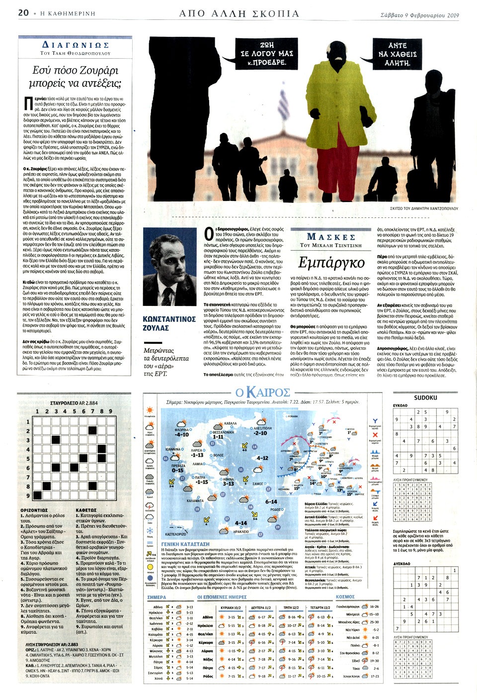 ΚΑΘΗΜΕΡΙΝΗ - 9 Φεβρουαρίου 2019