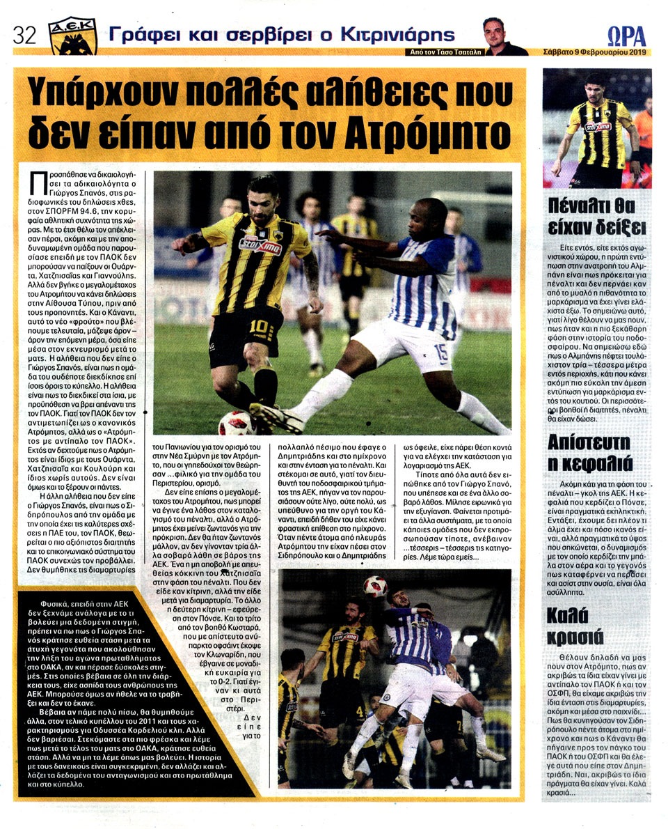 ΑΘΛΗΤΙΚΗ ΩΡΑ ΤΩΝ ΣΠΟΡ - 9 Φεβρουαρίου 2019