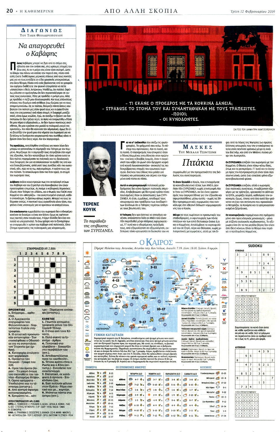 ΚΑΘΗΜΕΡΙΝΗ - 12 Φεβρουαρίου 2019