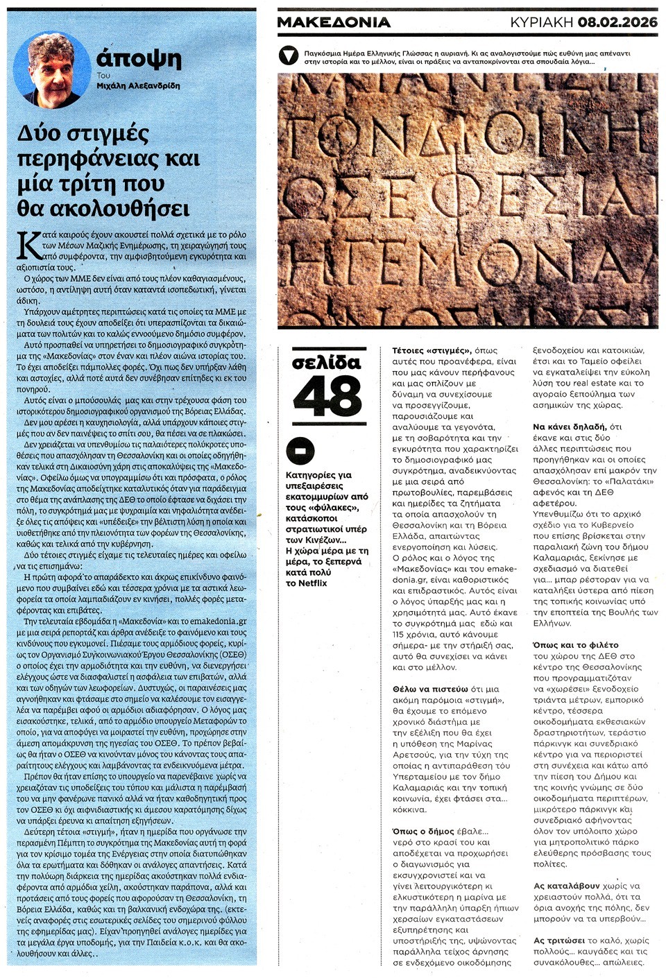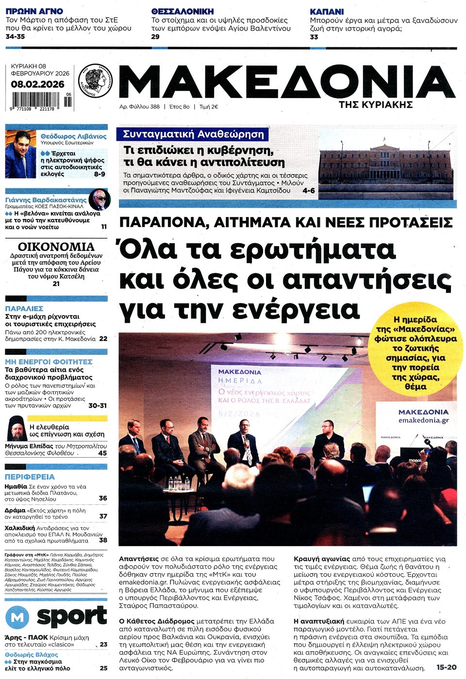 ΜΑΚΕΔΟΝΙΑ ΤΗΣ ΚΥΡΙΑΚΗΣ - 08 Φεβρουαρίου 2026