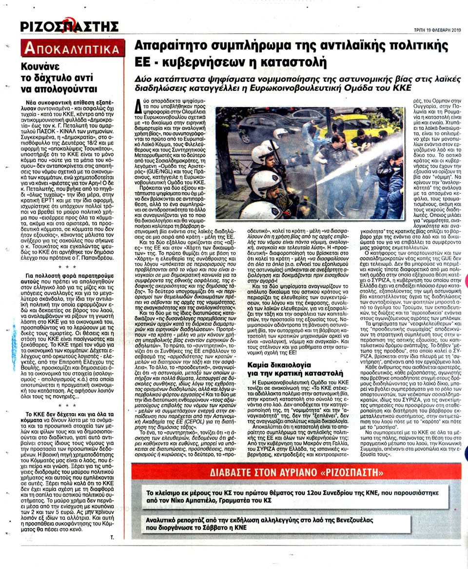 ΡΙΖΟΣΠΑΣΤΗΣ - 19 Φεβρουαρίου 2019