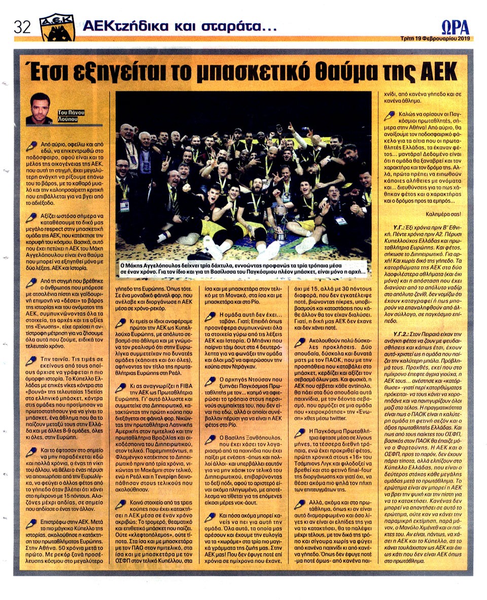 ΑΘΛΗΤΙΚΗ ΩΡΑ ΤΩΝ ΣΠΟΡ - 19 Φεβρουαρίου 2019