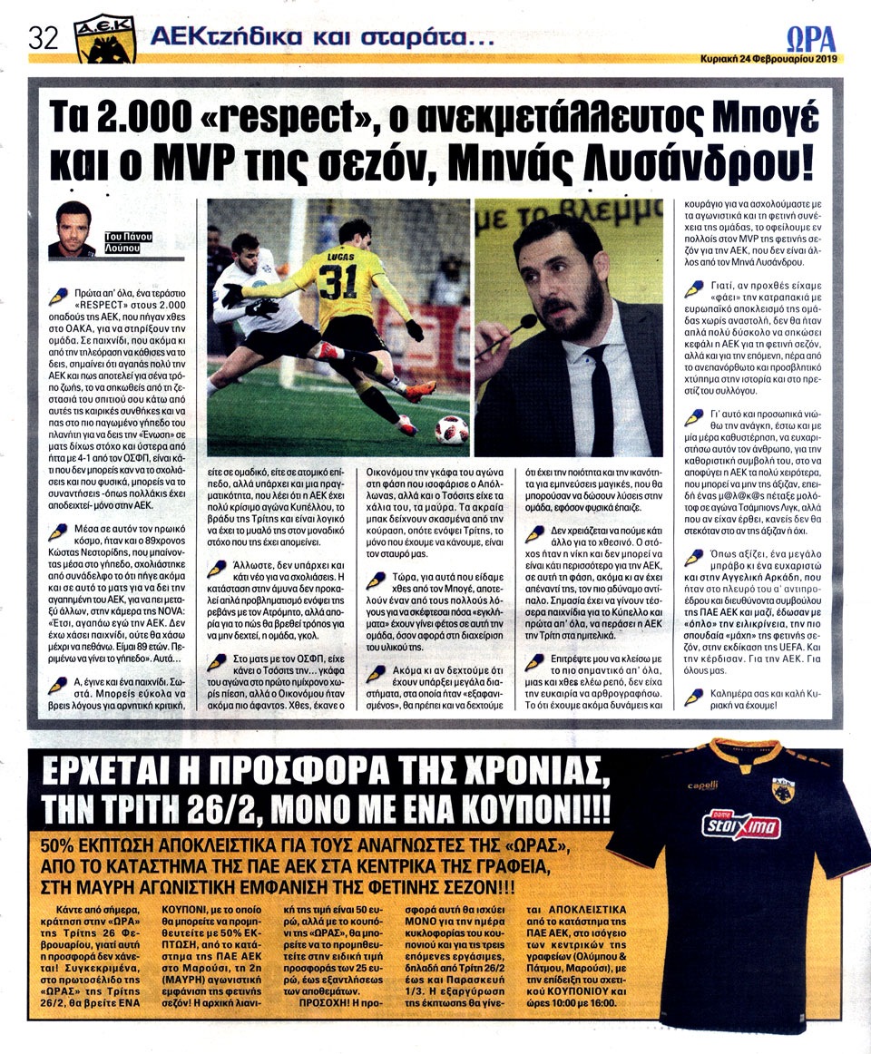 ΑΘΛΗΤΙΚΗ ΩΡΑ ΤΩΝ ΣΠΟΡ - 24 Φεβρουαρίου 2019