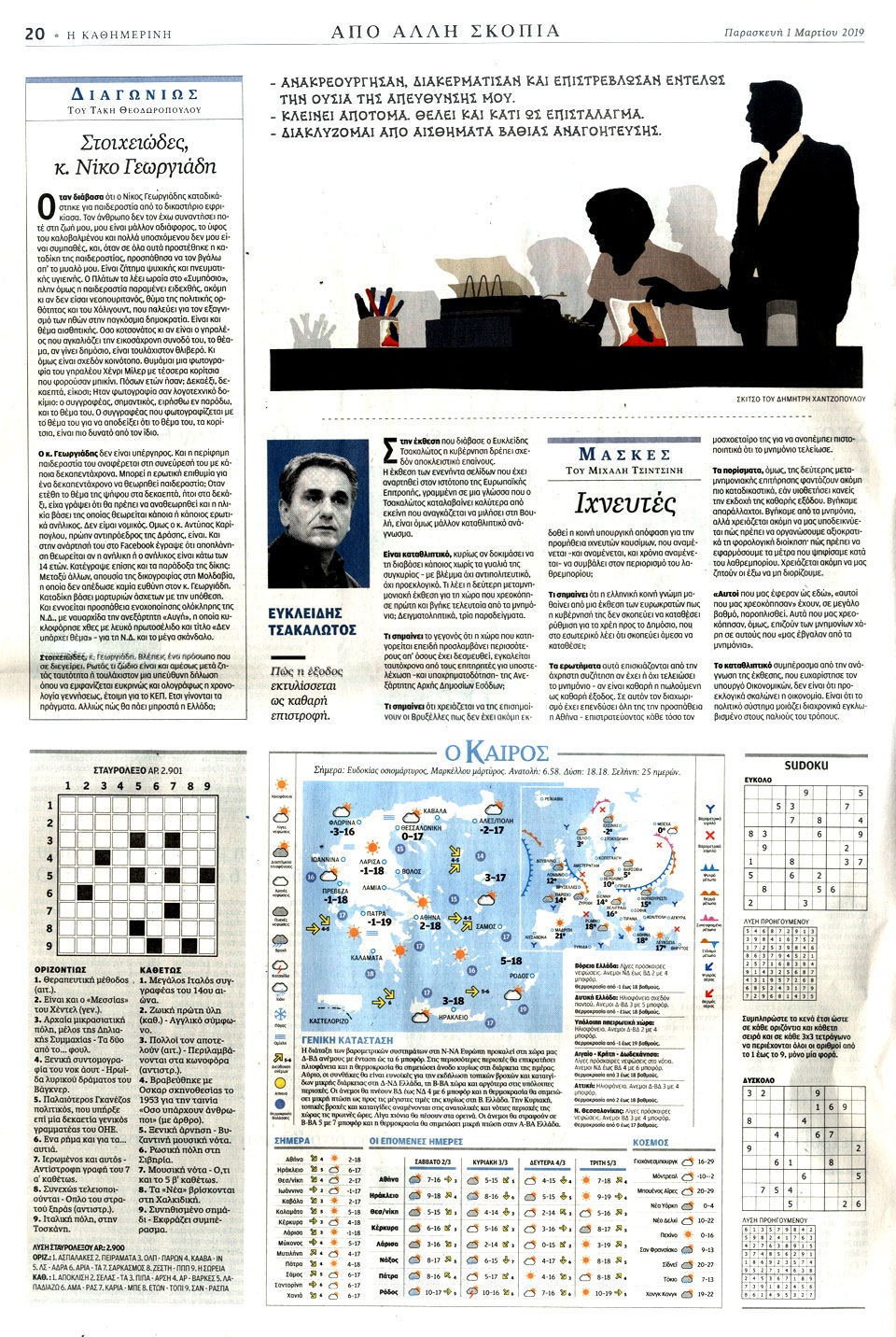 ΚΑΘΗΜΕΡΙΝΗ - 1 Μαρτίου 2019