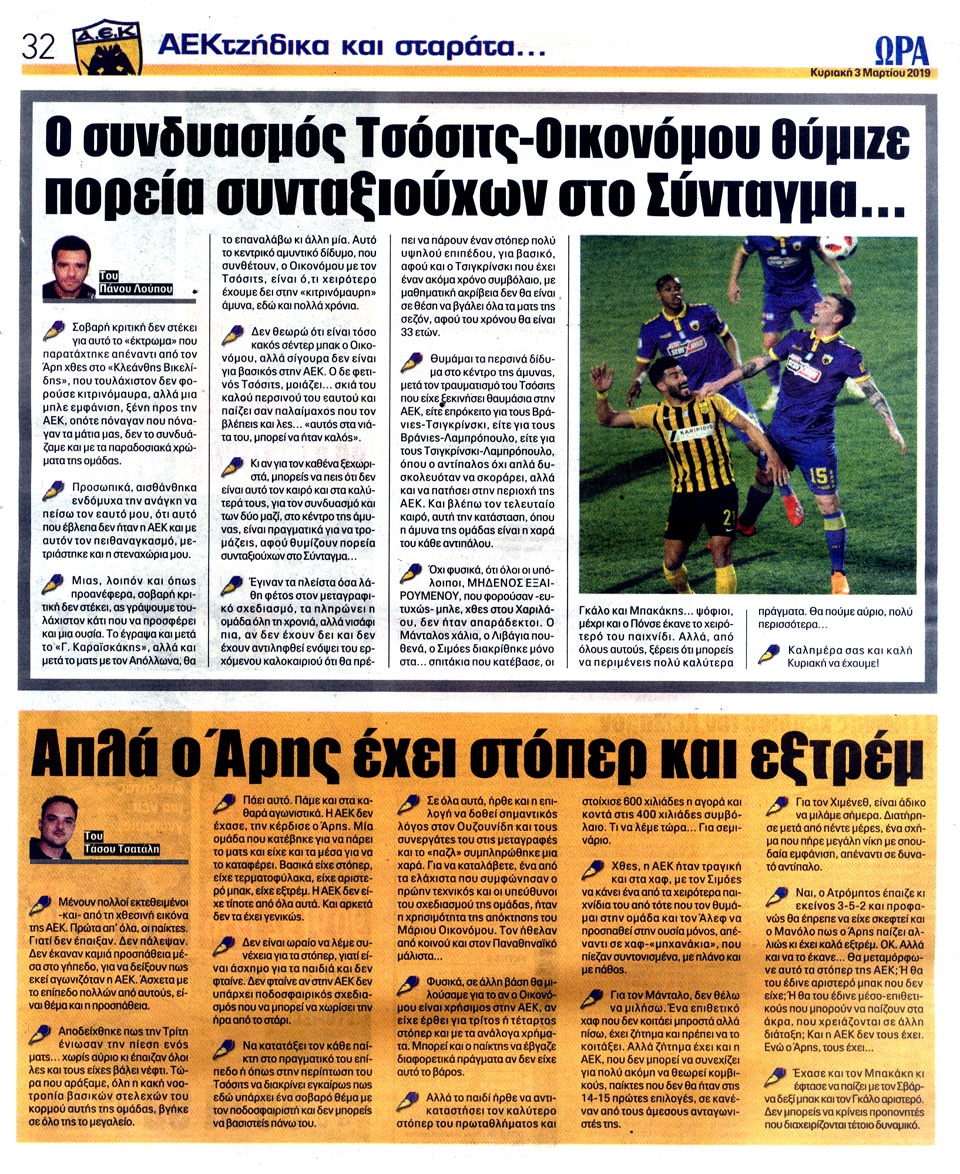 ΑΘΛΗΤΙΚΗ ΩΡΑ ΤΩΝ ΣΠΟΡ - 3 Μαρτίου 2019
