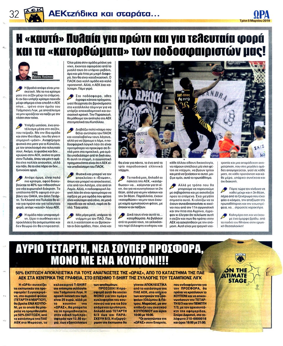 ΑΘΛΗΤΙΚΗ ΩΡΑ ΤΩΝ ΣΠΟΡ - 5 Μαρτίου 2019