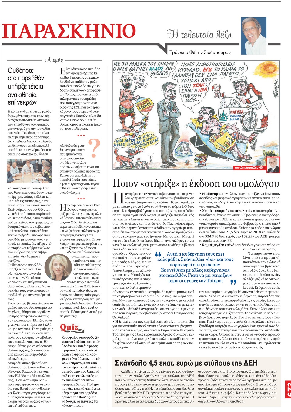 ΤΟ ΠΑΡΑΣΚΗΝΙΟ - 8 Μαρτίου 2019