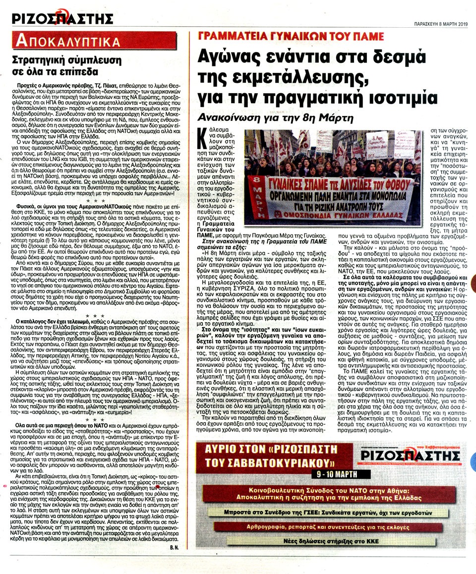 ΡΙΖΟΣΠΑΣΤΗΣ - 8 Μαρτίου 2019