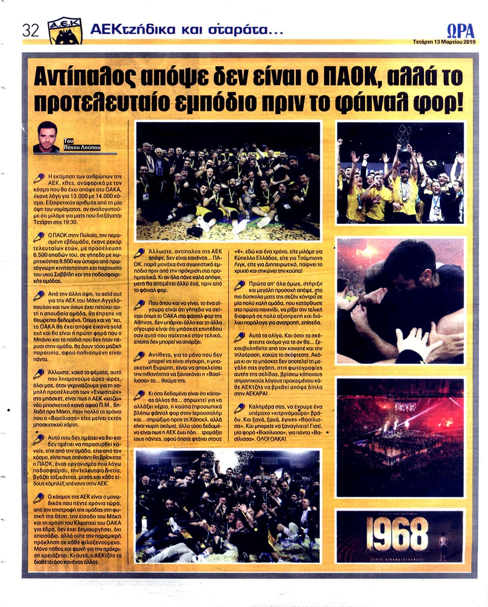 ΑΘΛΗΤΙΚΗ ΩΡΑ ΤΩΝ ΣΠΟΡ - 13 Μαρτίου 2019