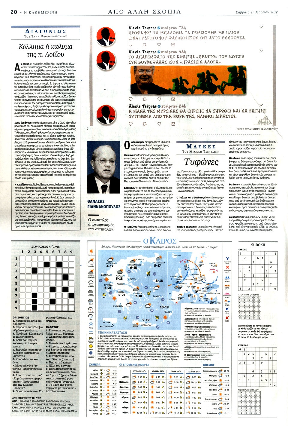 ΚΑΘΗΜΕΡΙΝΗ - 23 Μαρτίου 2019