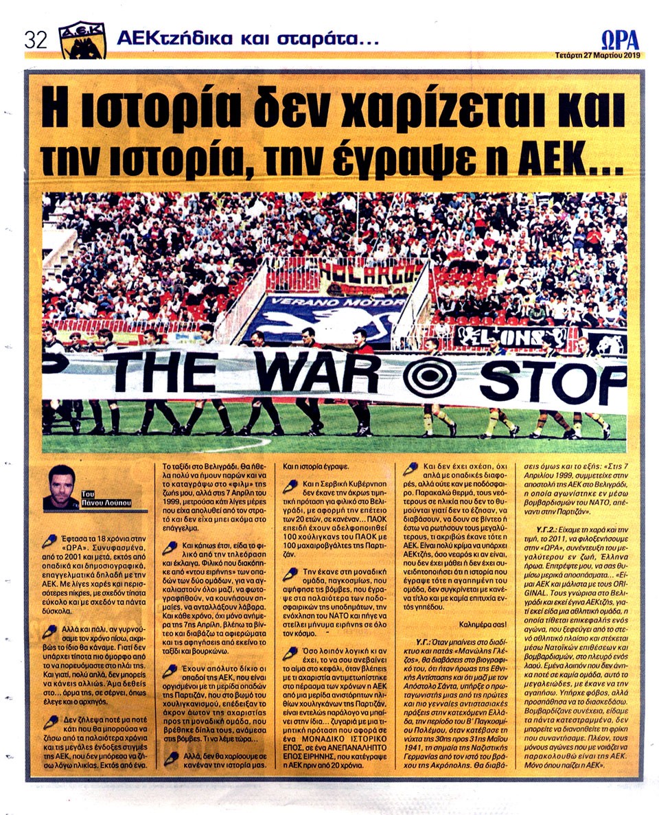 ΑΘΛΗΤΙΚΗ ΩΡΑ ΤΩΝ ΣΠΟΡ - 27 Μαρτίου 2019