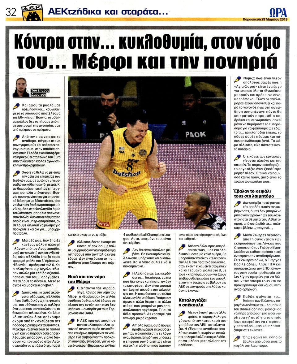 ΑΘΛΗΤΙΚΗ ΩΡΑ ΤΩΝ ΣΠΟΡ - 29 Μαρτίου 2019