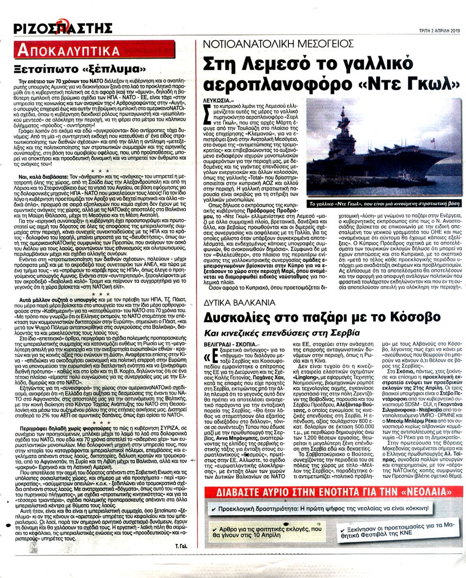 ΡΙΖΟΣΠΑΣΤΗΣ - 2 Απριλίου 2019