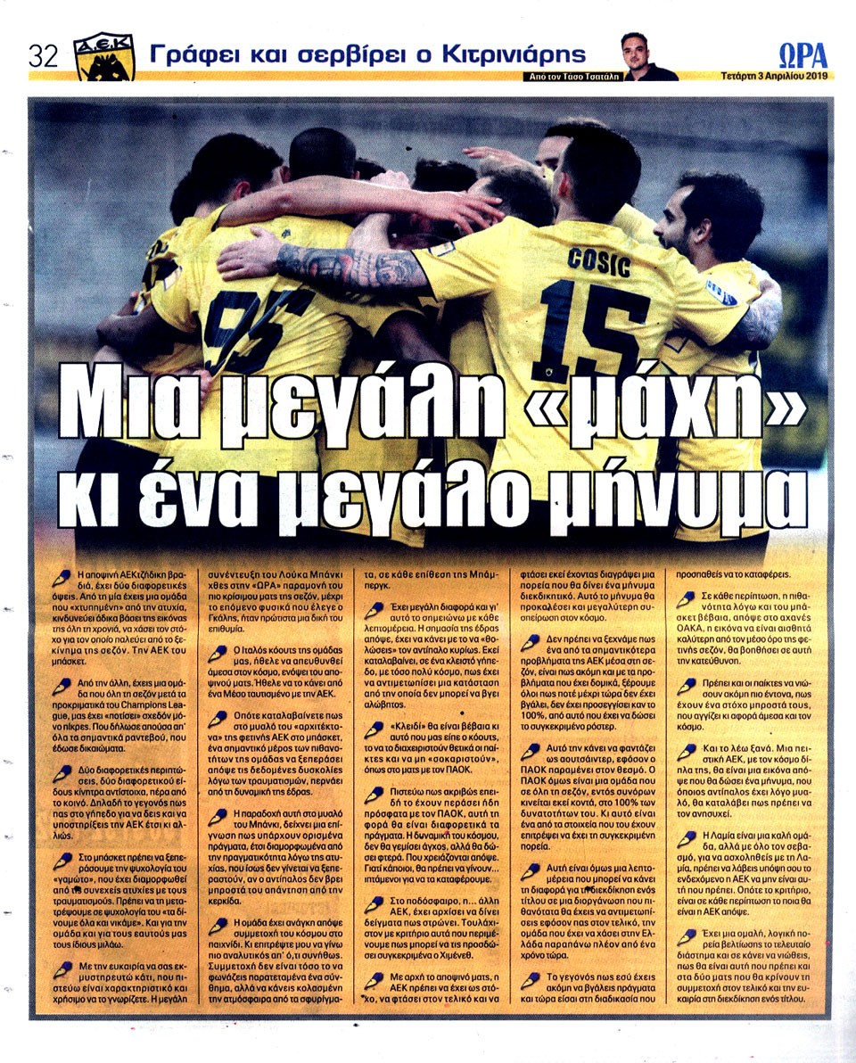 ΑΘΛΗΤΙΚΗ ΩΡΑ ΤΩΝ ΣΠΟΡ - 3 Απριλίου 2019