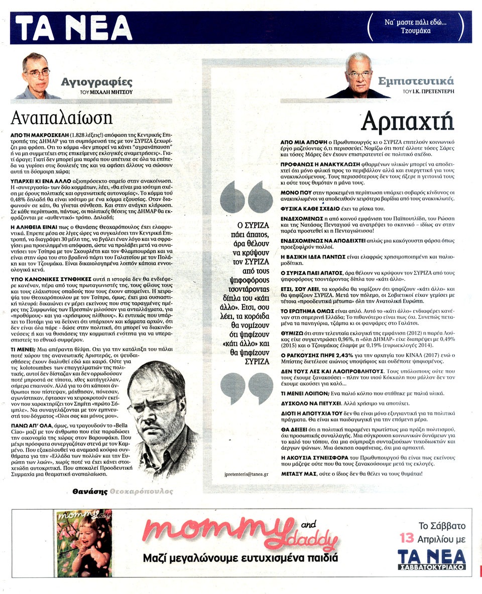 ΤΑ ΝΕΑ - 8 Απριλίου 2019