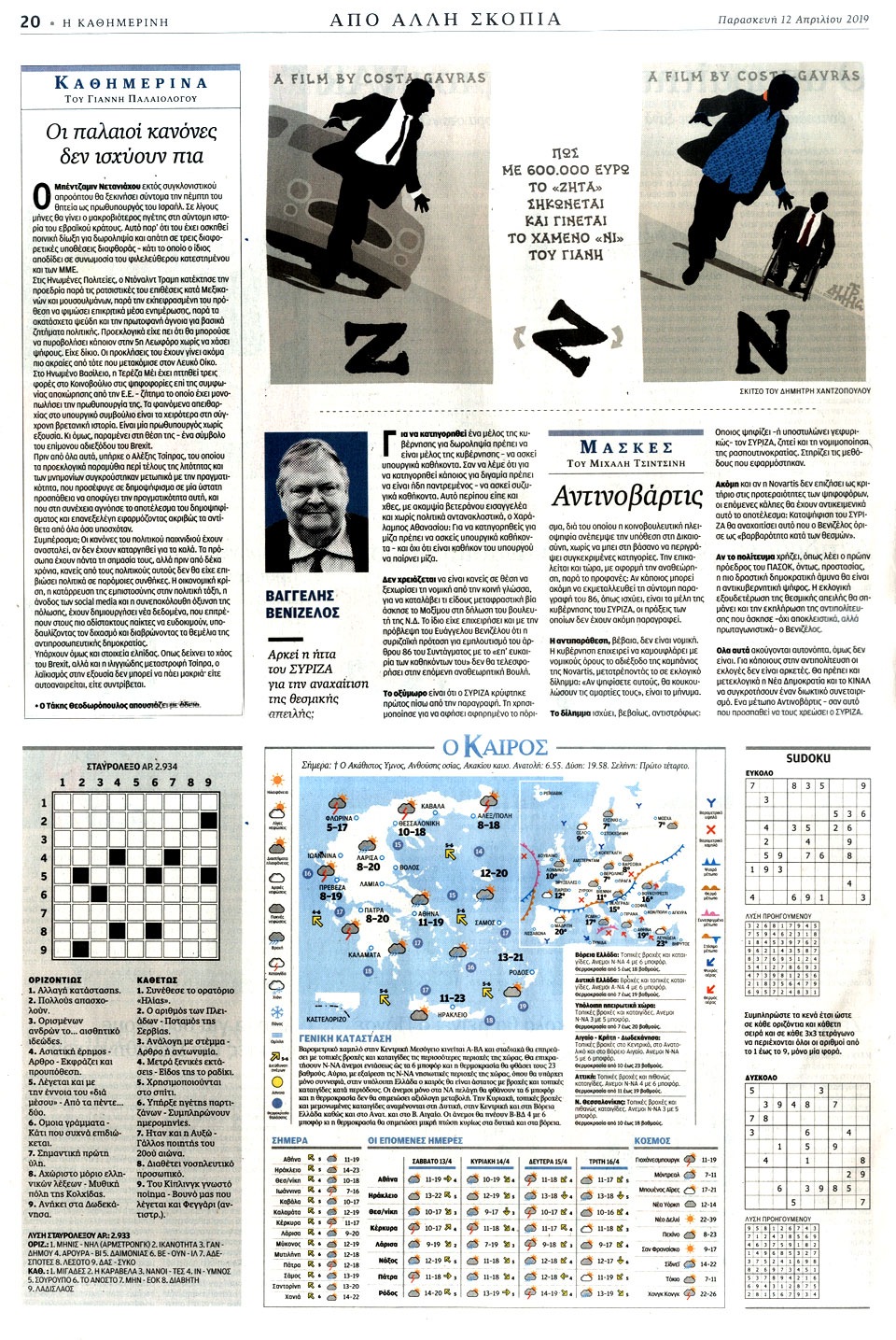 ΚΑΘΗΜΕΡΙΝΗ - 12 Απριλίου 2019