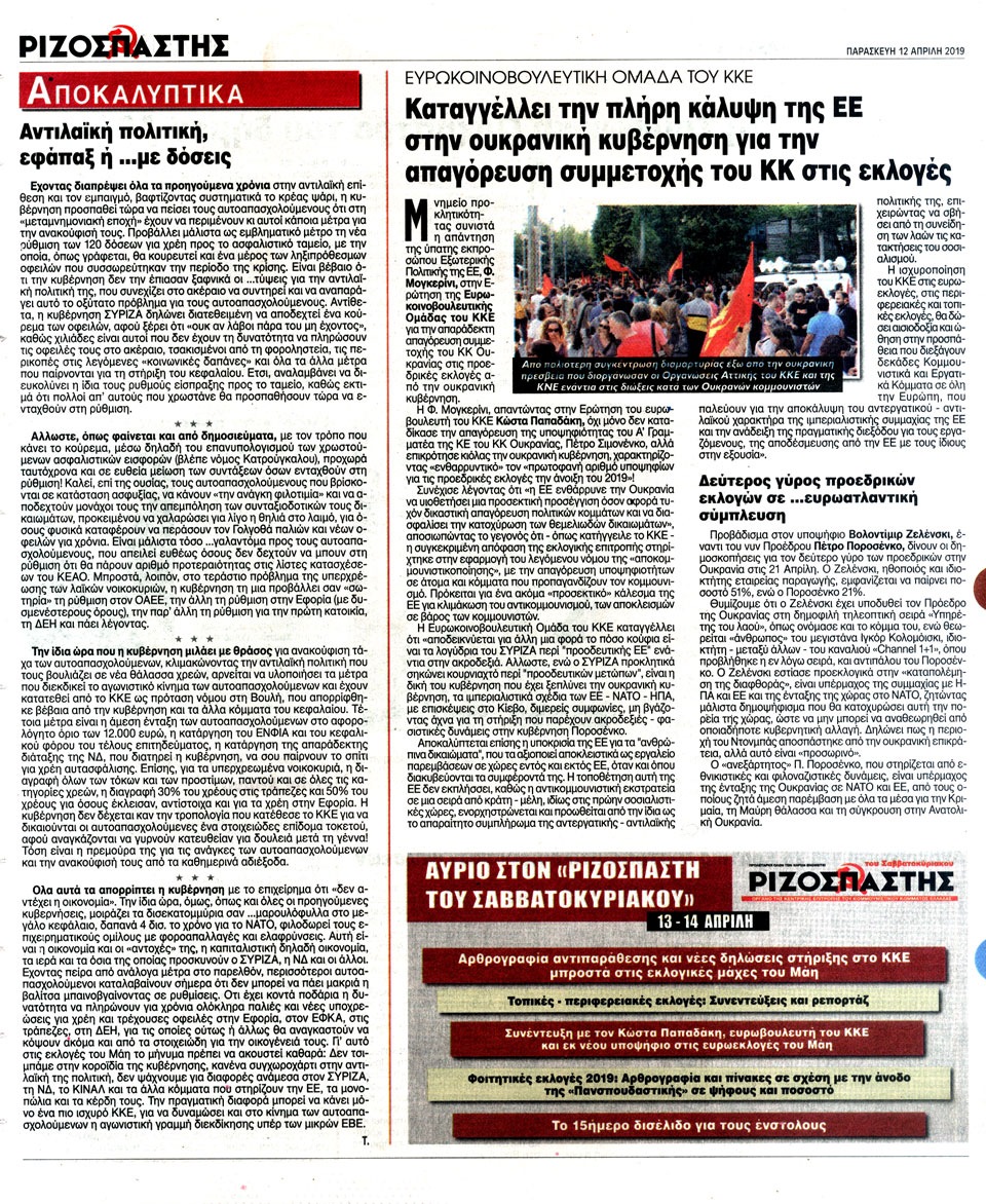 ΡΙΖΟΣΠΑΣΤΗΣ - 12 Απριλίου 2019
