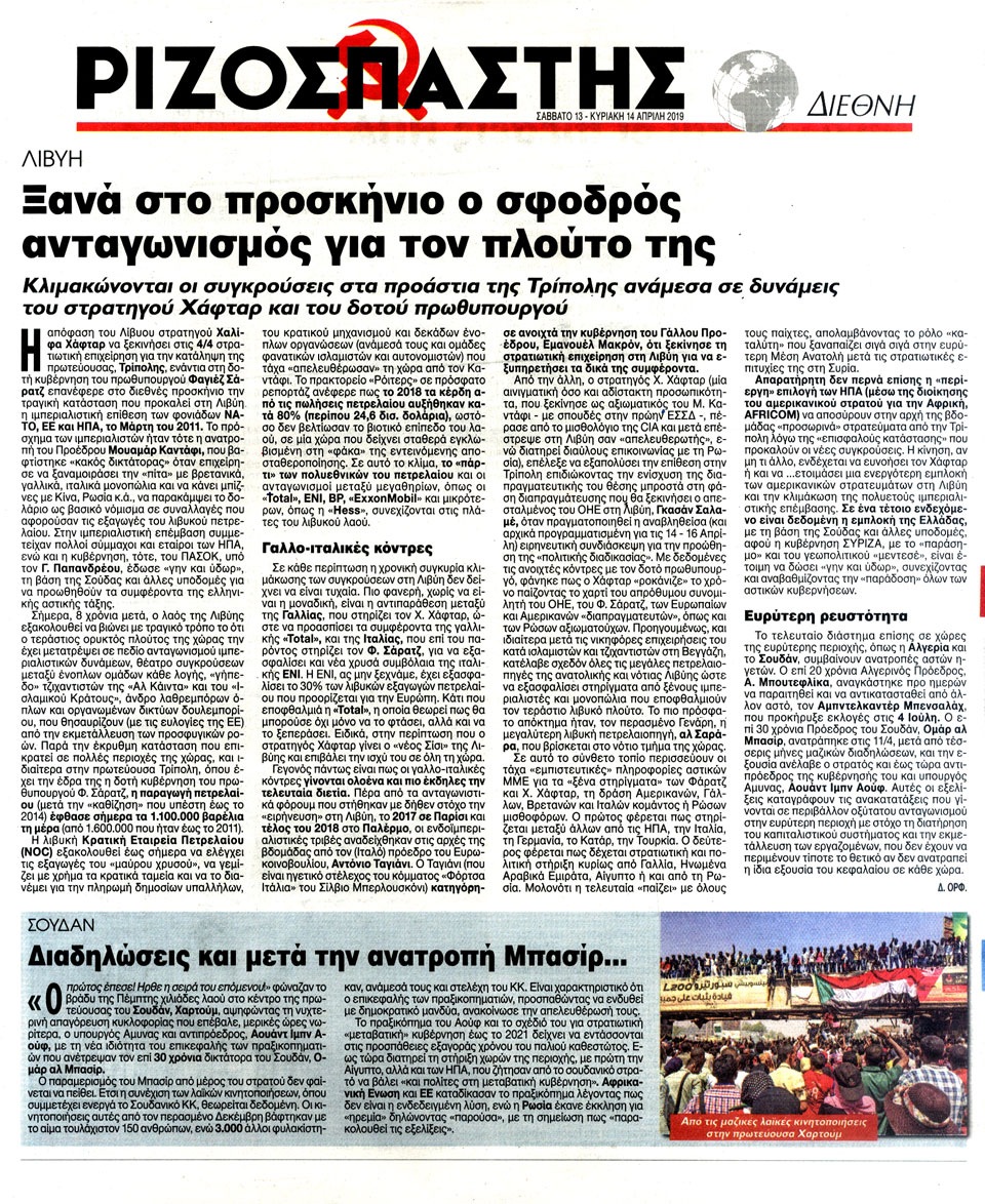 ΡΙΖΟΣΠΑΣΤΗΣ - 13 Απριλίου 2019