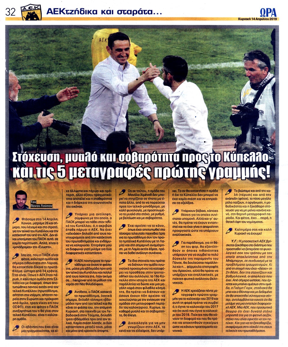 ΑΘΛΗΤΙΚΗ ΩΡΑ ΤΩΝ ΣΠΟΡ - 14 Απριλίου 2019