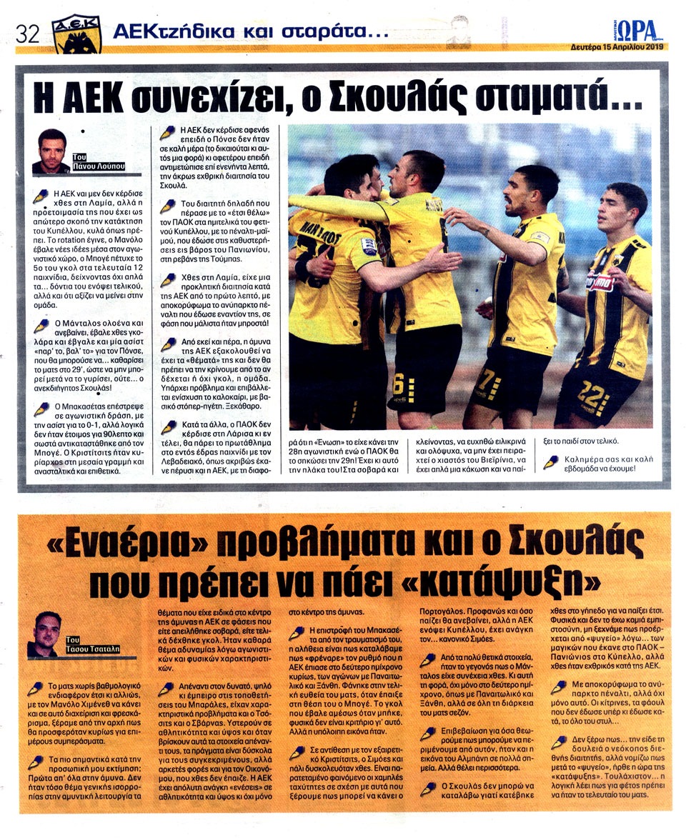 ΑΘΛΗΤΙΚΗ ΩΡΑ ΤΩΝ ΣΠΟΡ - 15 Απριλίου 2019