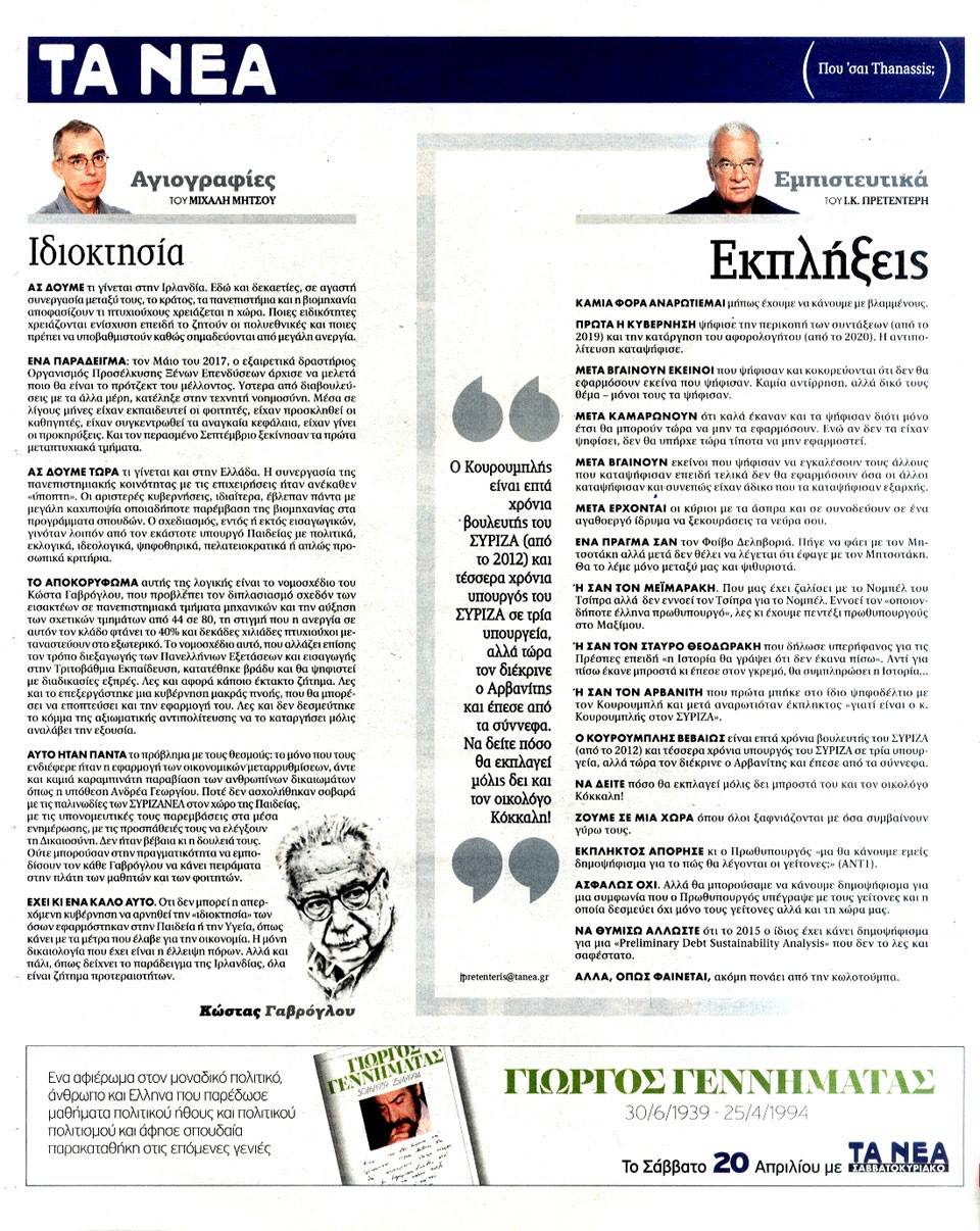 ΤΑ ΝΕΑ - 18 Απριλίου 2019