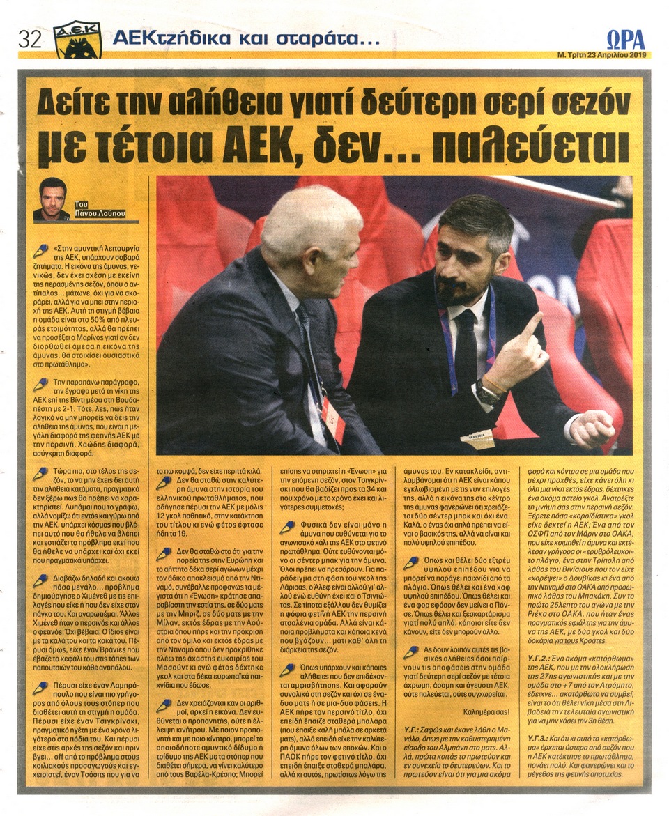 ΑΘΛΗΤΙΚΗ ΩΡΑ ΤΩΝ ΣΠΟΡ - 23 Απριλίου 2019