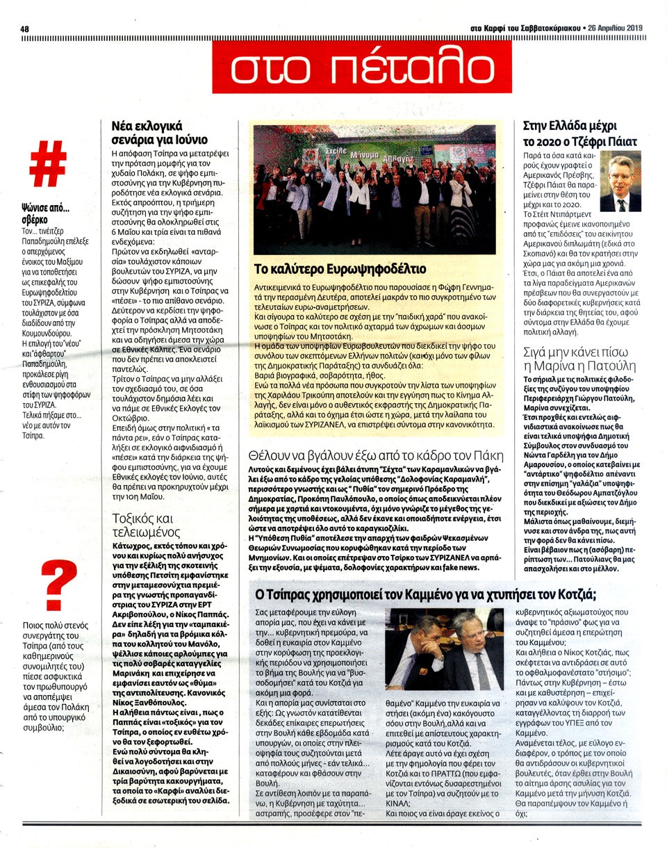 ΣΤΟ ΚΑΡΦΙ - 26 Απριλίου 2019