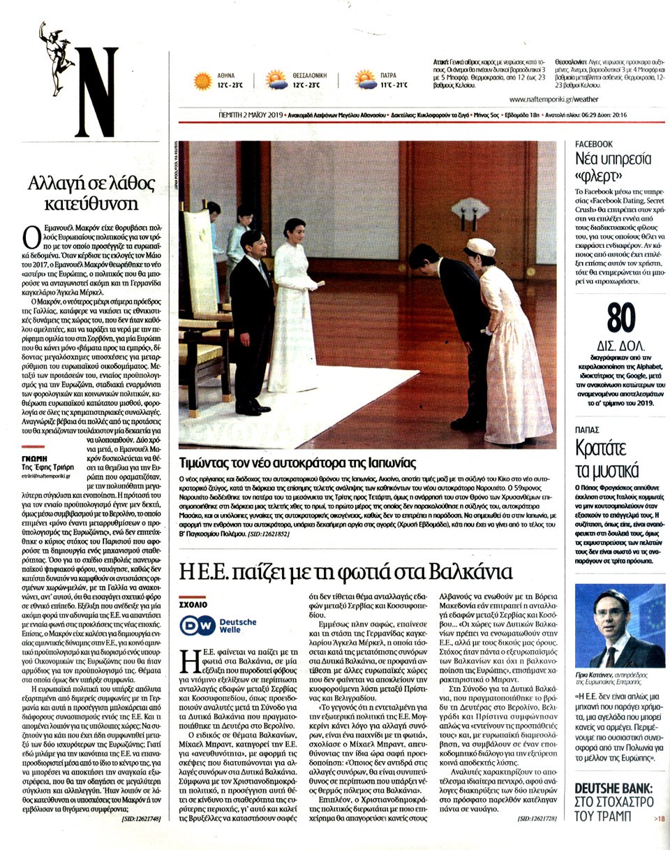 ΝΑΥΤΕΜΠΟΡΙΚΗ - 2 Μαΐου 2019