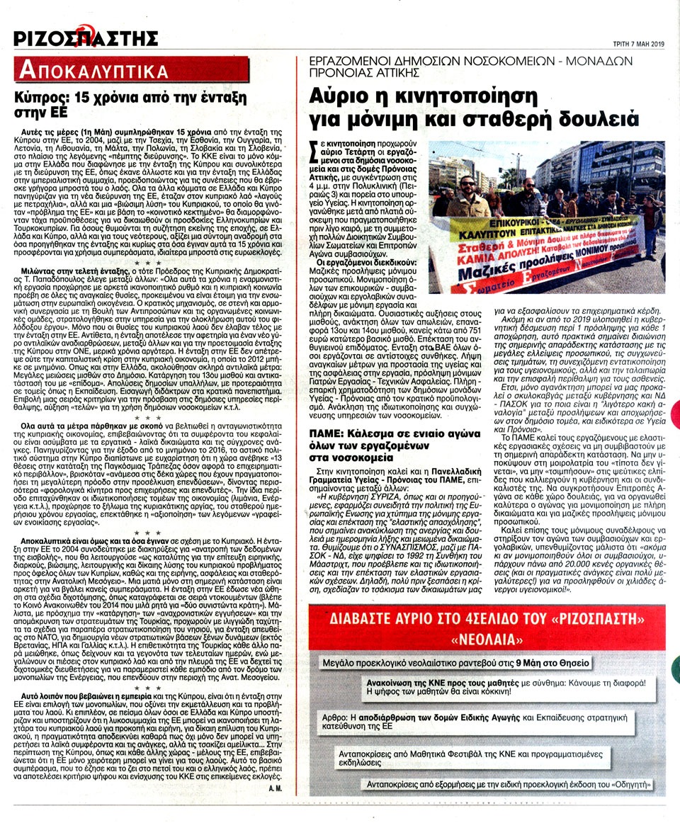 ΡΙΖΟΣΠΑΣΤΗΣ - 7 Μαΐου 2019