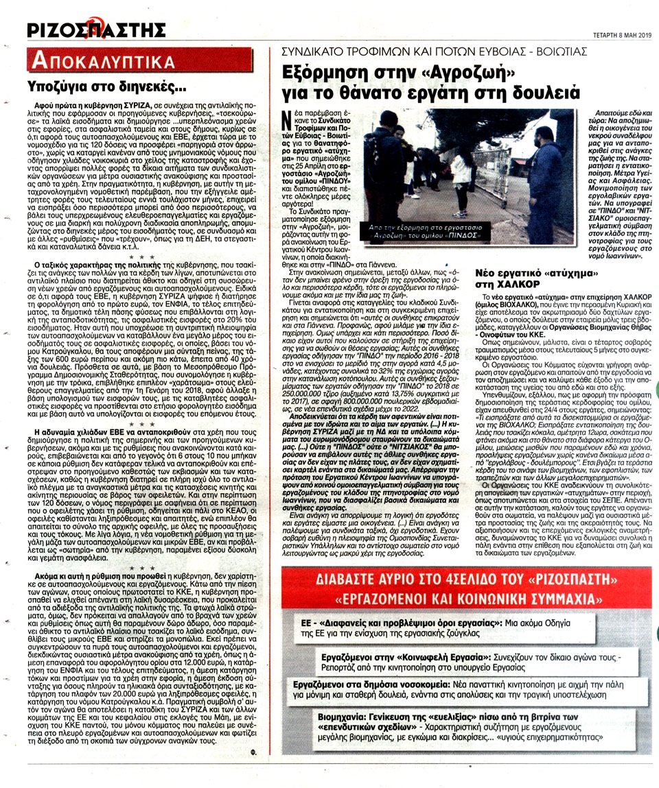 ΡΙΖΟΣΠΑΣΤΗΣ - 8 Μαΐου 2019