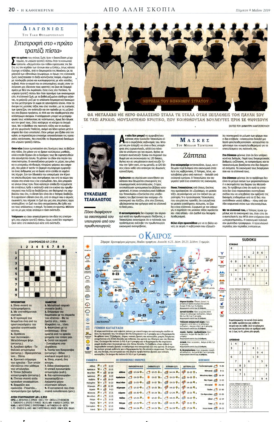ΚΑΘΗΜΕΡΙΝΗ - 9 Μαΐου 2019