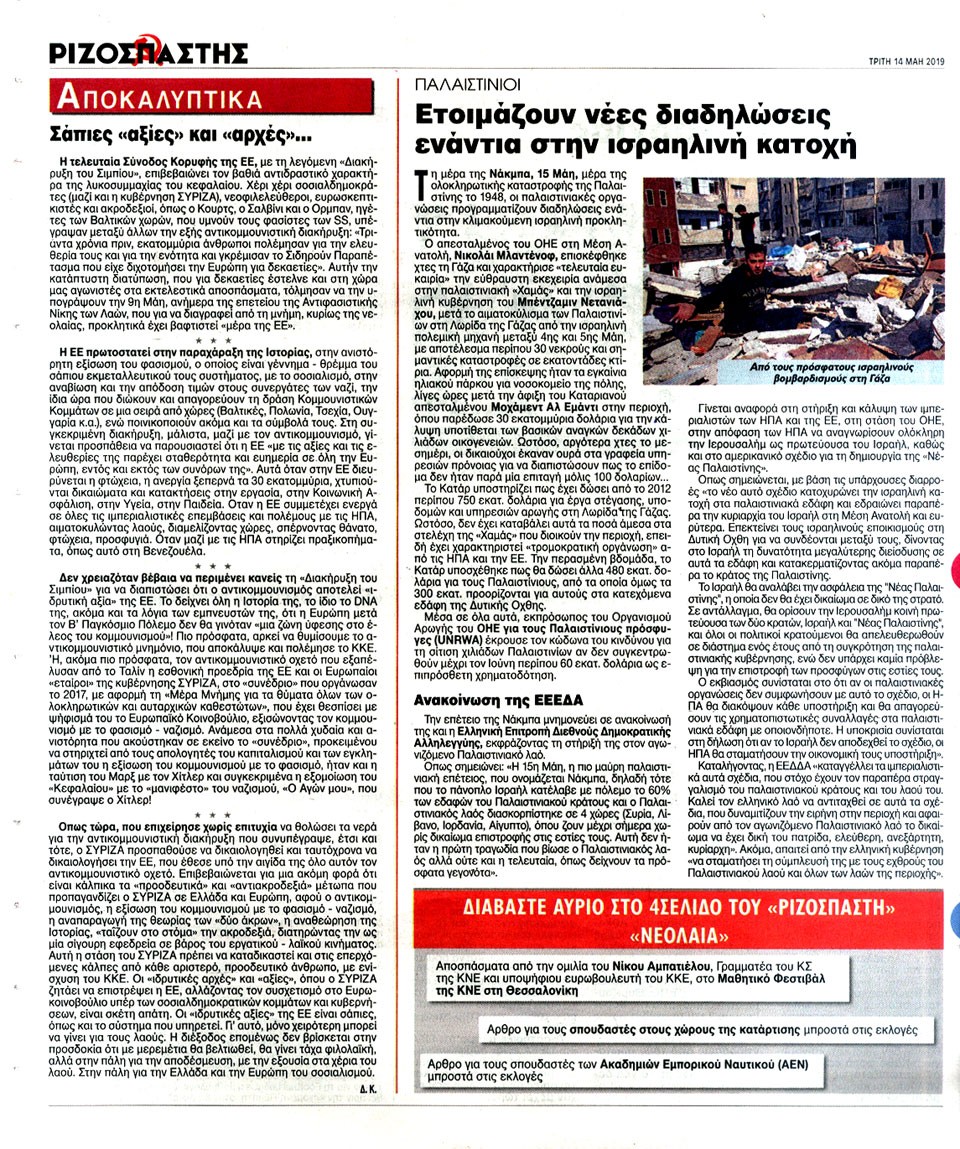 ΡΙΖΟΣΠΑΣΤΗΣ - 14 Μαΐου 2019