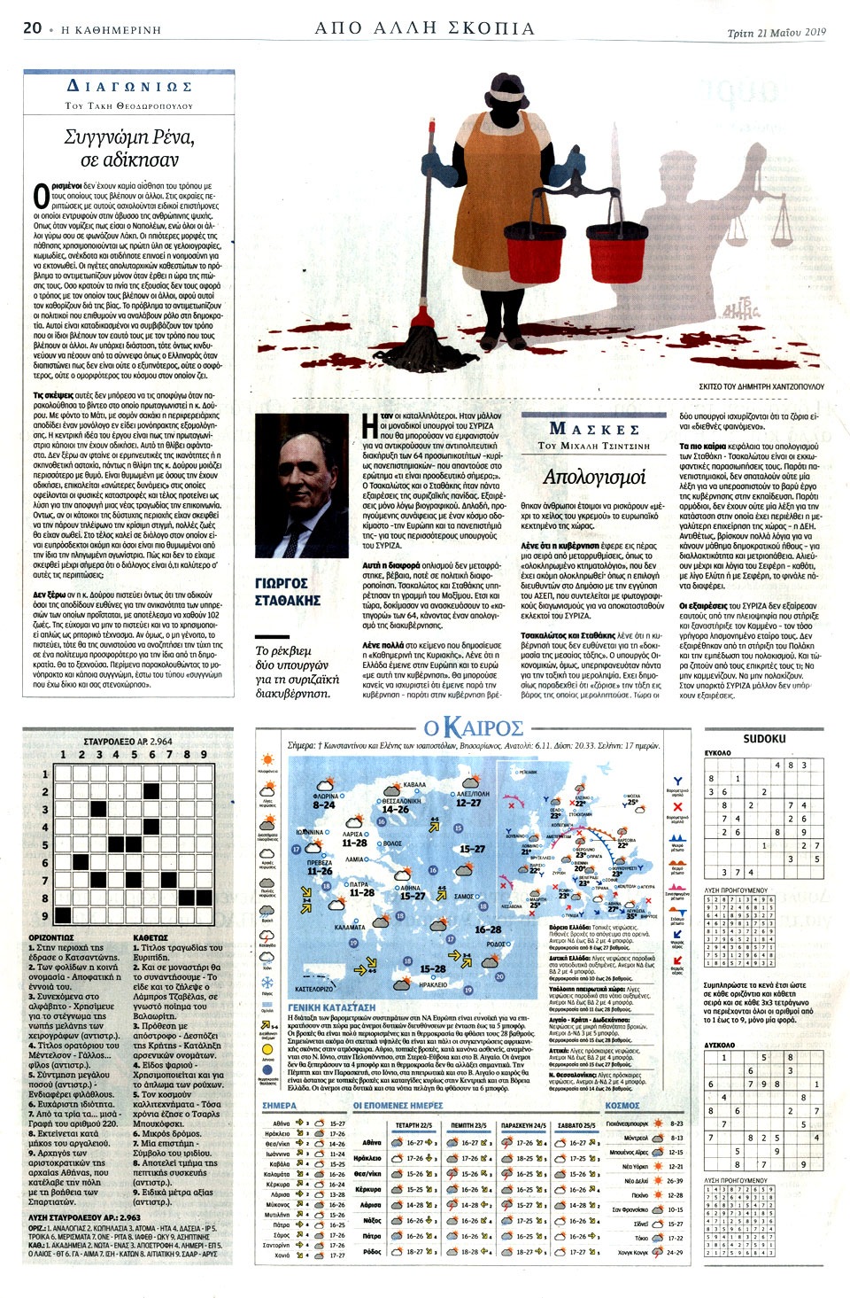 ΚΑΘΗΜΕΡΙΝΗ - 21 Μαΐου 2019