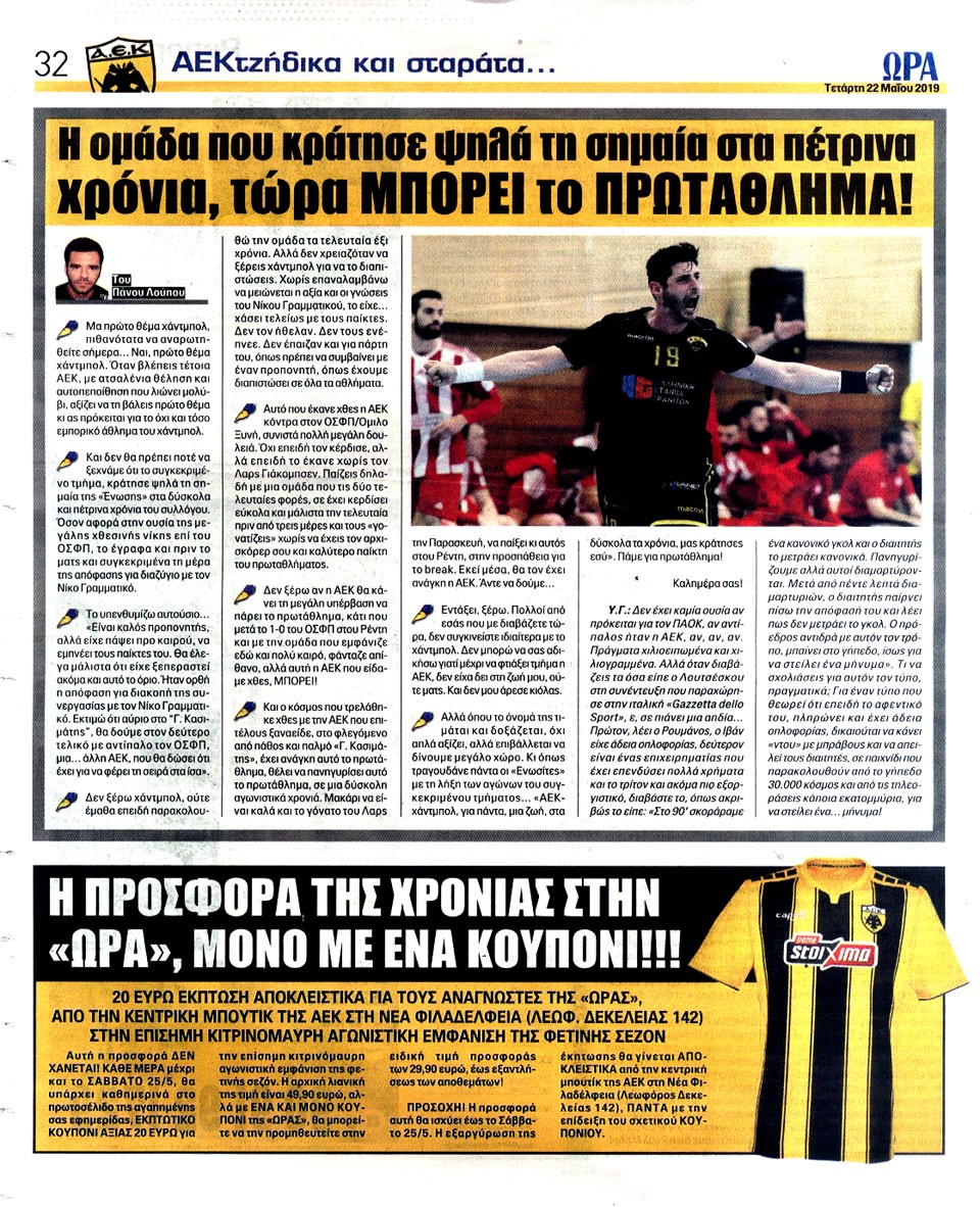 ΑΘΛΗΤΙΚΗ ΩΡΑ ΤΩΝ ΣΠΟΡ - 22 Μαΐου 2019