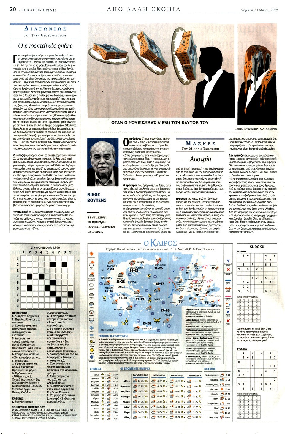 ΚΑΘΗΜΕΡΙΝΗ - 23 Μαΐου 2019